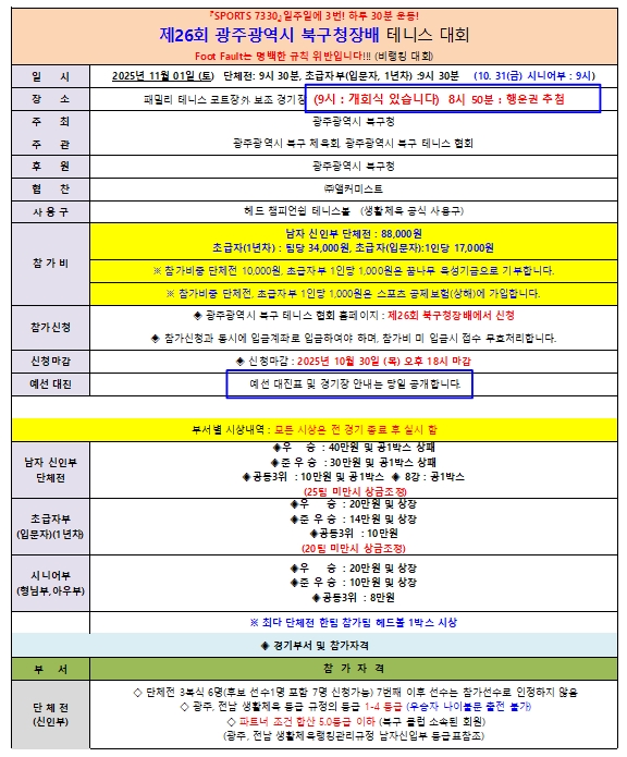 제26회 광주광역시 북구청장배 테니스 대회